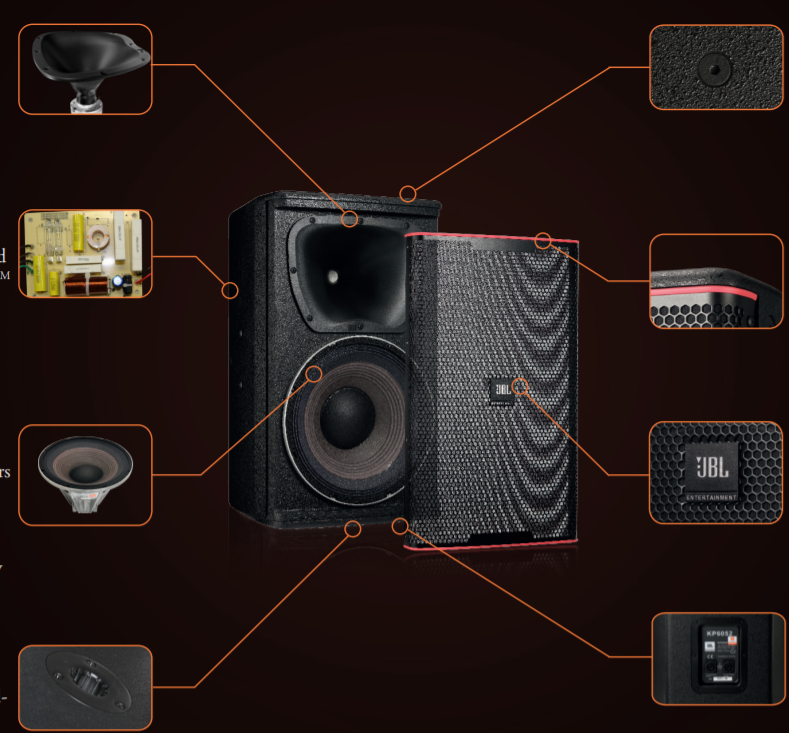 - Loa full JBL KP6055 được trang bị một loa trầm JBL 2265H Differential Drive® 15 inch công suất cao cùng với một trình điều khiển nén neodymium JBL 2408H-1 1,5 inch được cấu tạo từ màng nhôm Polymer